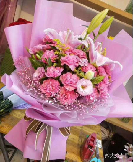 立即抢单花材信息:7朵百合8朵康乃馨,每次换不同包纸(图片仅供参考,或8朵百合7朵康乃馨也行)