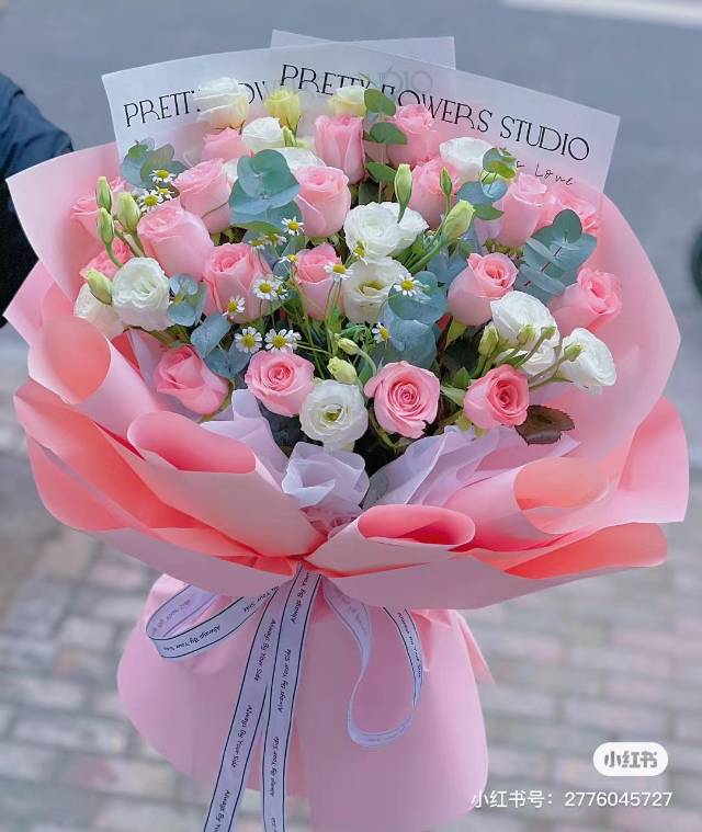19支粉玫瑰5支白色洋桔梗混搭花束(2束) |