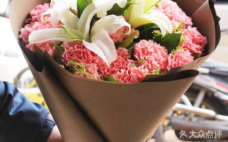6支粉佳人、4支白色洋桔梗、2支多头粉百合,搭配适量白色相思梅、竹柏、书带草装饰。如图制作 |
