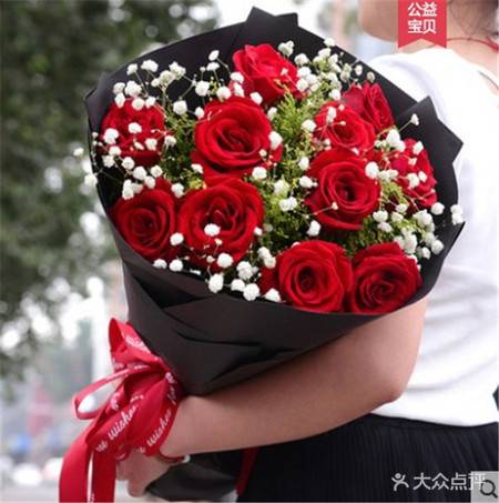 11朵红玫瑰花束,如图包装,有卡片,尽快送达