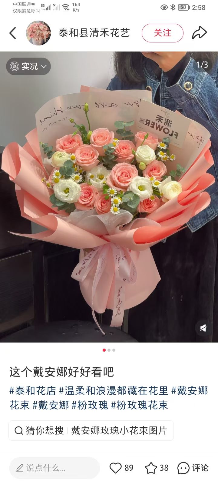 33朵粉玫粉康3朵向日葵混搭花束(图中绿色的不要) |