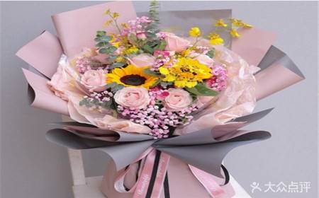 11粉玫2向日葵花束,如图包装大气好看,有卡片 ,按时送达。