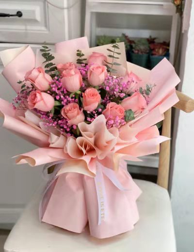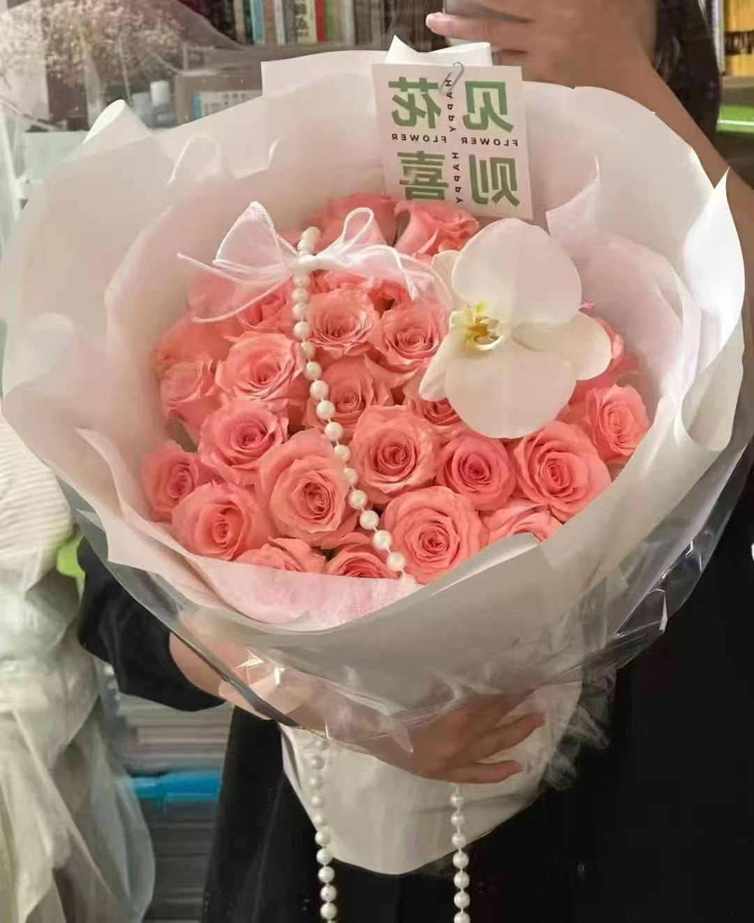 1支向日葵配3朵香槟玫瑰花束 按图包装款式做