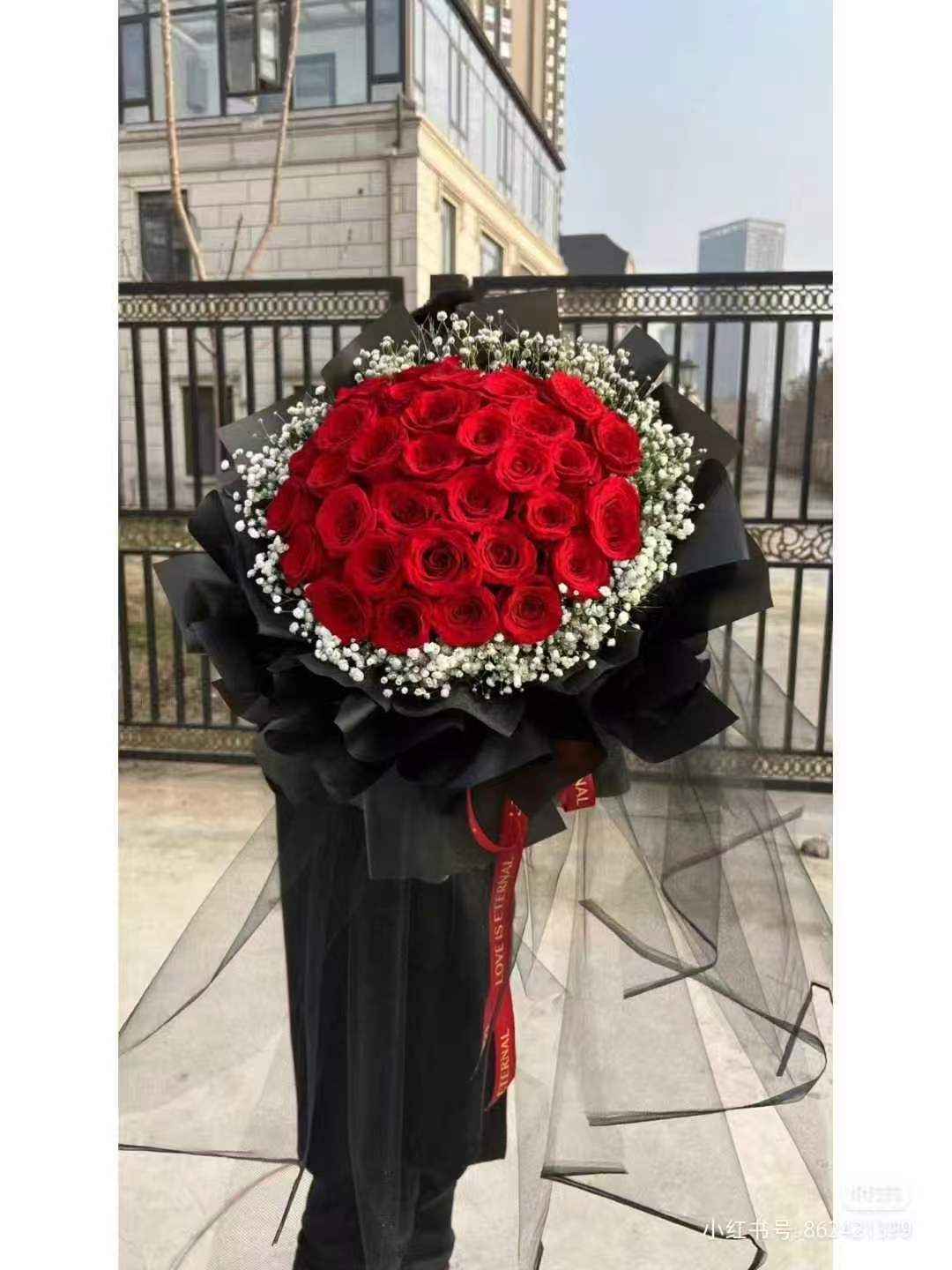 9朵红玫花束 ,如图包 |