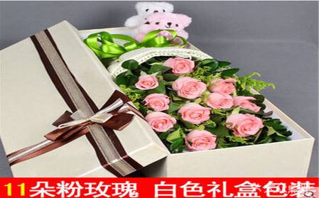 11朵白玫瑰2小熊礼盒装 (客人同意换成粉玫瑰) 如图 |