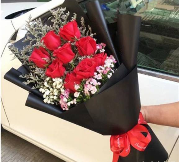 11朵红玫花束如图包装大气好看,有卡片,做好马上送。 |