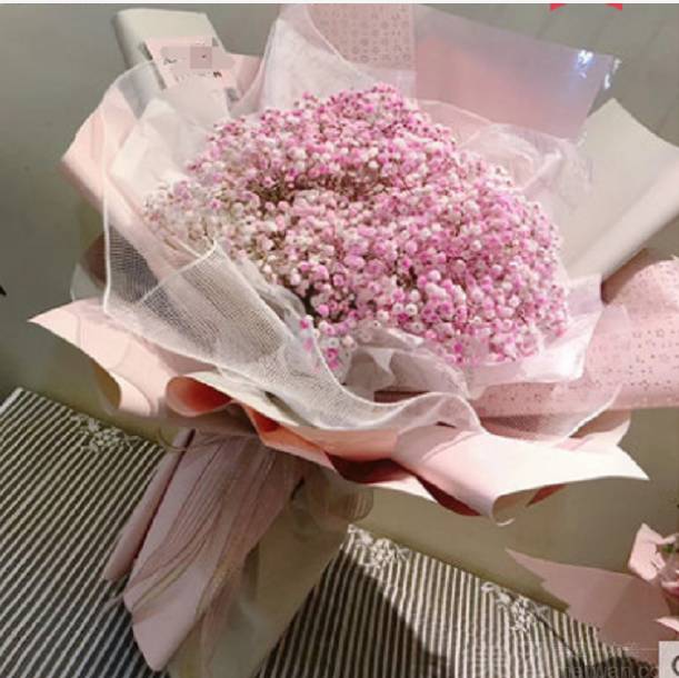 19支红色康乃馨5朵白百合花束,如图(用红色包装纸) |