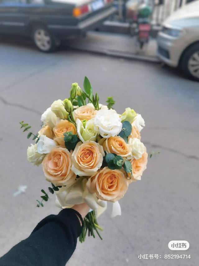 19支香槟配洋桔梗手捧花,如图 |