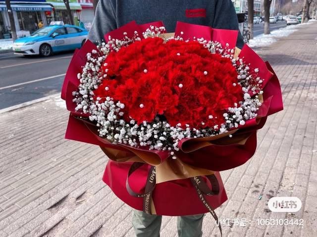 33支红玫满天星黑纱款,按图包 |