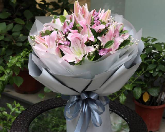 16朵粉百合花束,如图 |