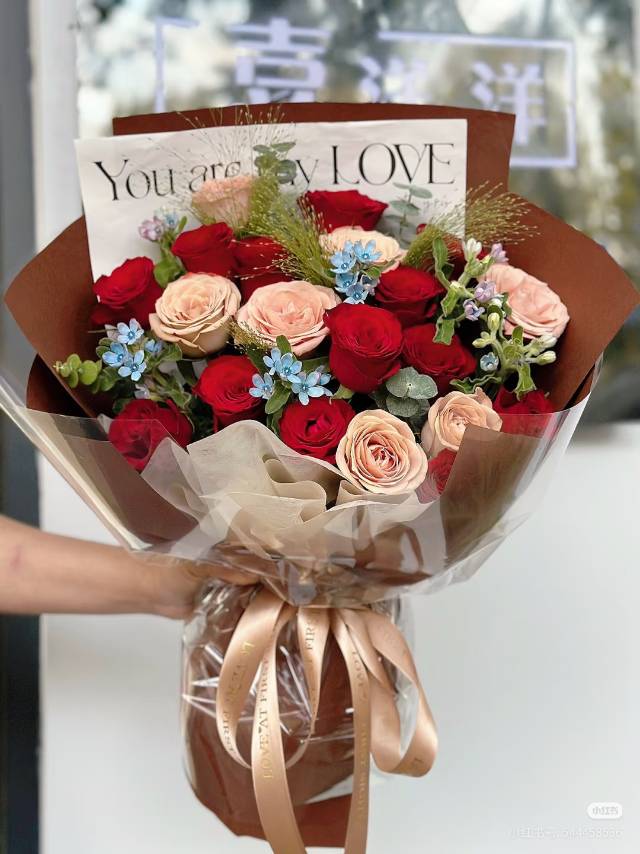 11朵红玫瑰8朵卡布奇诺混搭花束,按图包 |