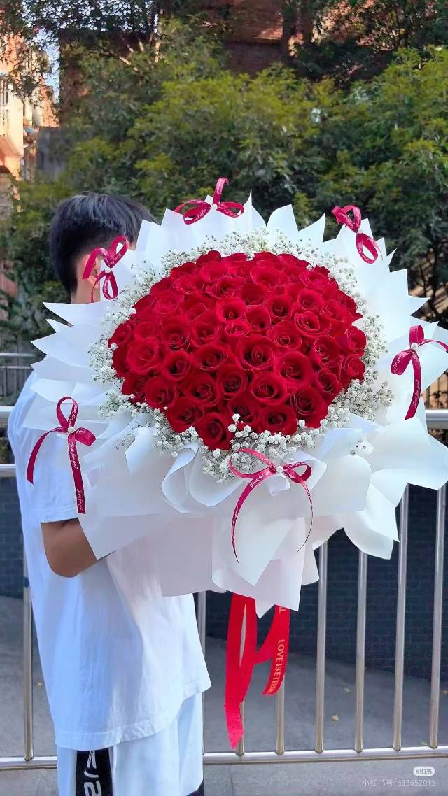 52朵红玫瑰花束按图包+一个6寸动物奶油生日蛋糕,如图 |