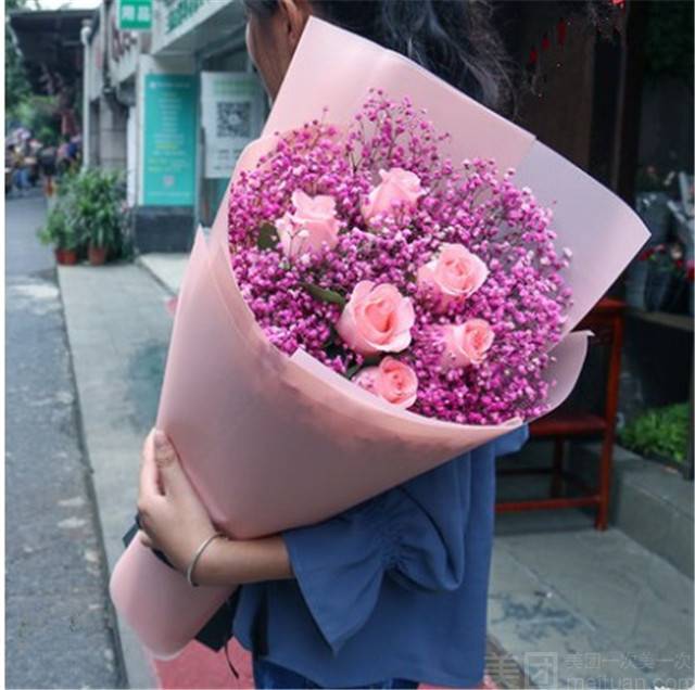 6朵粉玫满天星 |
