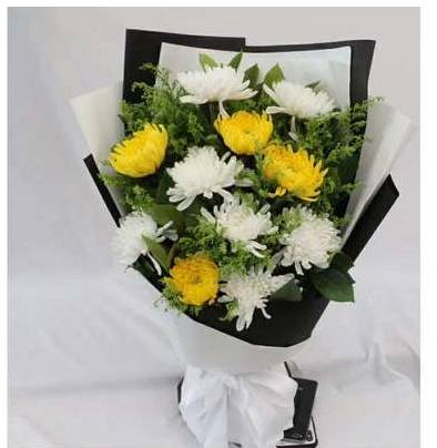 11朵黄白菊花如图穿插 下面做海绵保湿处理 |