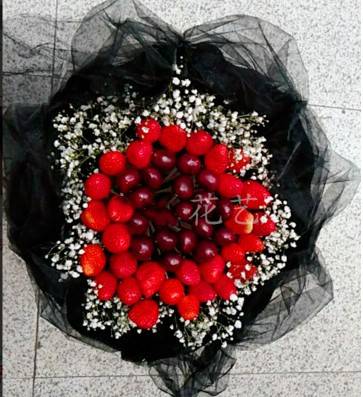 32草莓20车厘子 白色满天星 黑色网纱如图 包装 |