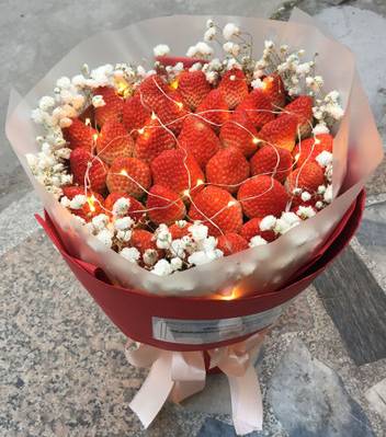 33颗草莓 满天星串灯 里层白色雾面纸 外层暗红色包装纸 |