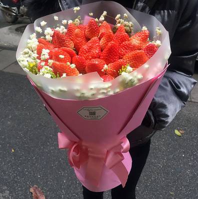 33颗草莓 白色满天星 里层雾面纸 外层 粉色包装纸粉色扎带 |