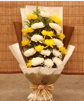 19黄白菊搭配黄英 白色咖啡色 麻片包装 |