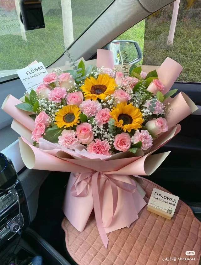 15朵粉玫15朵粉康乃馨2支多头百合配满天星绿叶混搭花束,如图 |