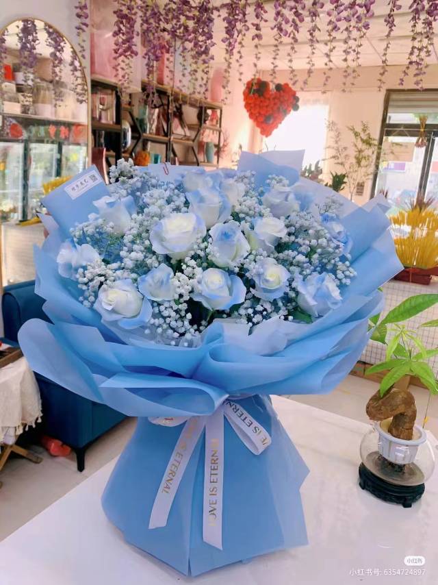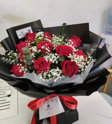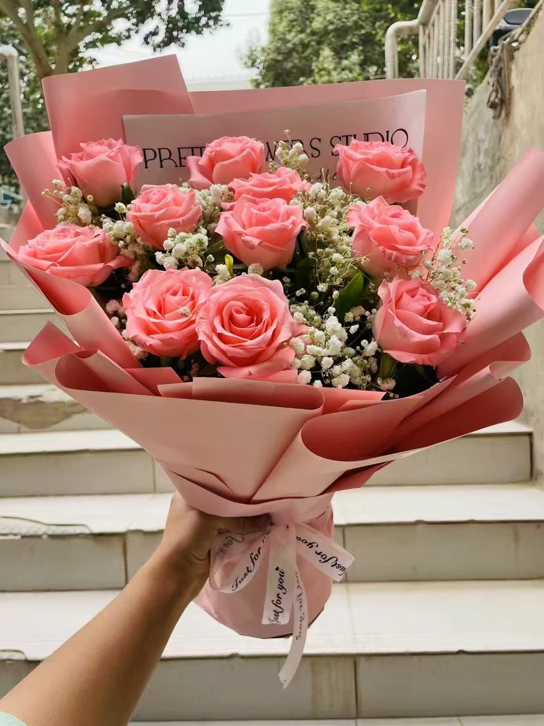 9朵粉玫瑰2朵白玫瑰混搭满天星花束 |