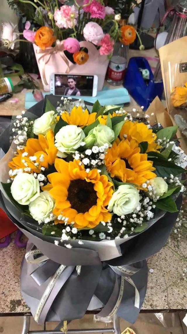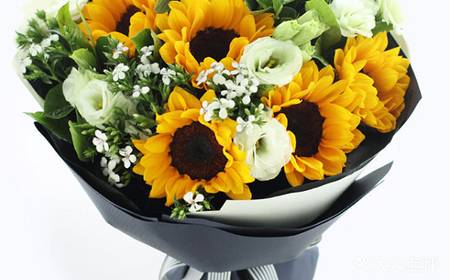 6朵向日葵加7支白色梗桔花束,花材新鲜,包装好看,有卡片,如图做 |