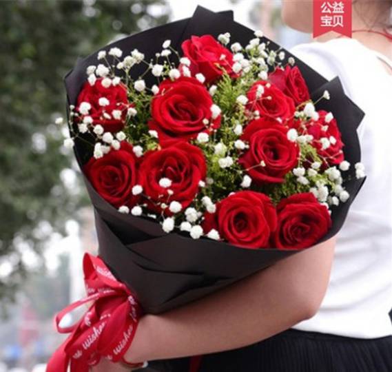 11朵红玫花束,如图包装大气好看 ,有卡片 ,现在做好马上送。谢谢! |