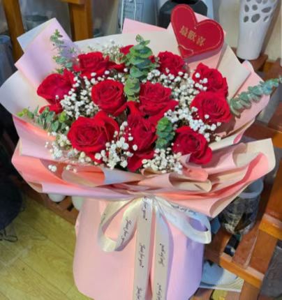 52朵红玫瑰加白纱鲜花束。如图包 |