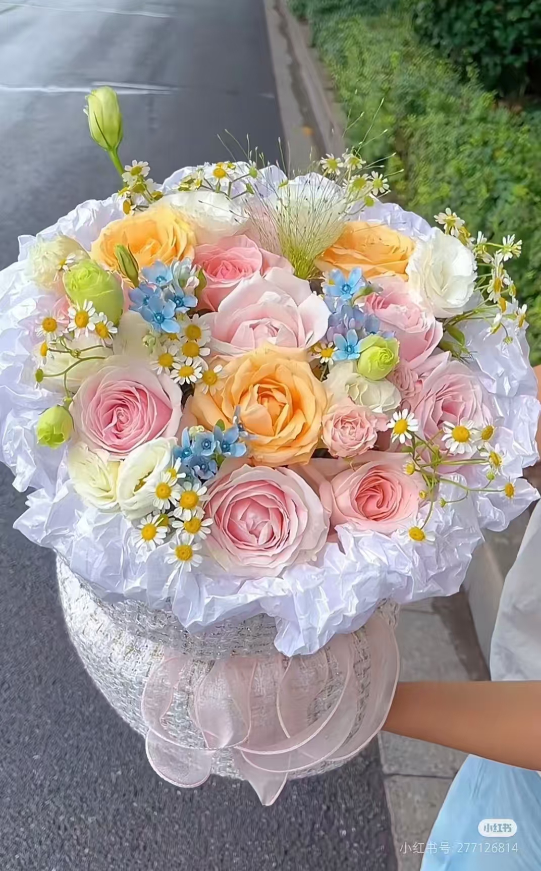 19支红玫瑰2支白百合花束,如图 |