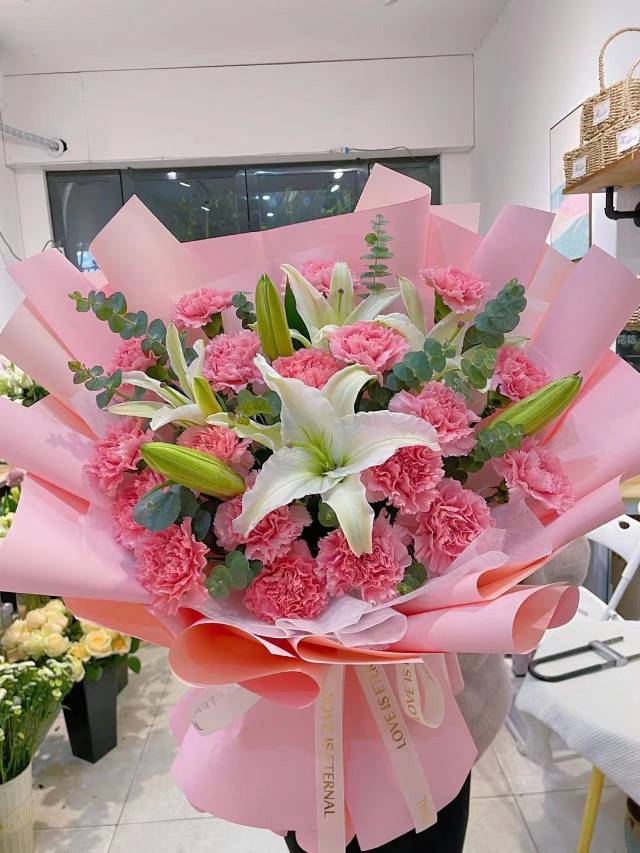 33支精品红玫瑰加纱鲜花束,别外加一支单支多头白百合 |