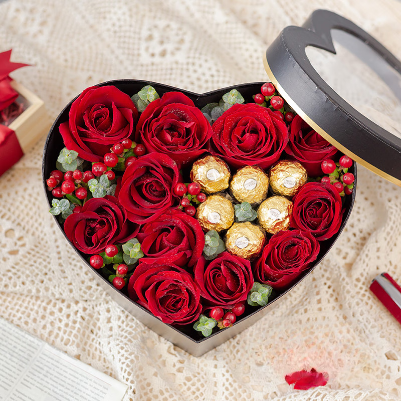 红玫瑰橙泡泡巧克力+2瓶旺仔+2个圣诞苹果圆礼盒