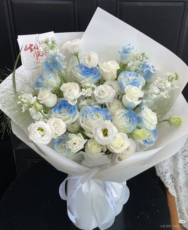 11朵淬冰蓝加白桔梗花束。如图包 |