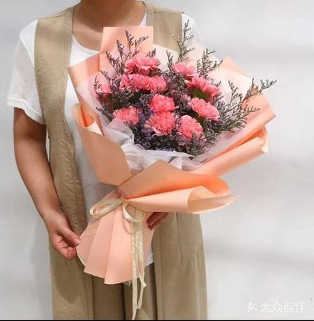 19支粉康乃馨2支百合花束,如图 |