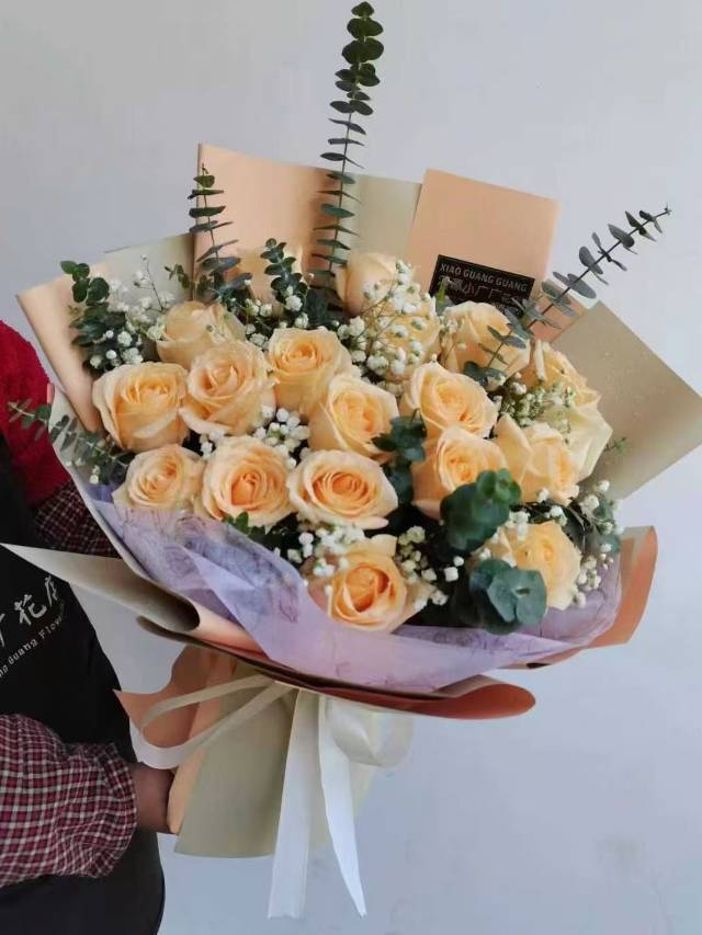 6朵粉玫瑰满天星混搭花束,如图包装大气好看,有卡片,明天(19号)下午按时送达。