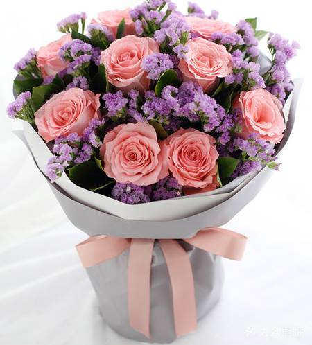 11朵粉玫加粉蓝星鲜花束,如图包 |