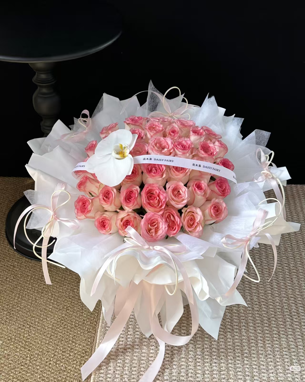 11枝粉色康乃馨搭配1枝粉百合花束 按图