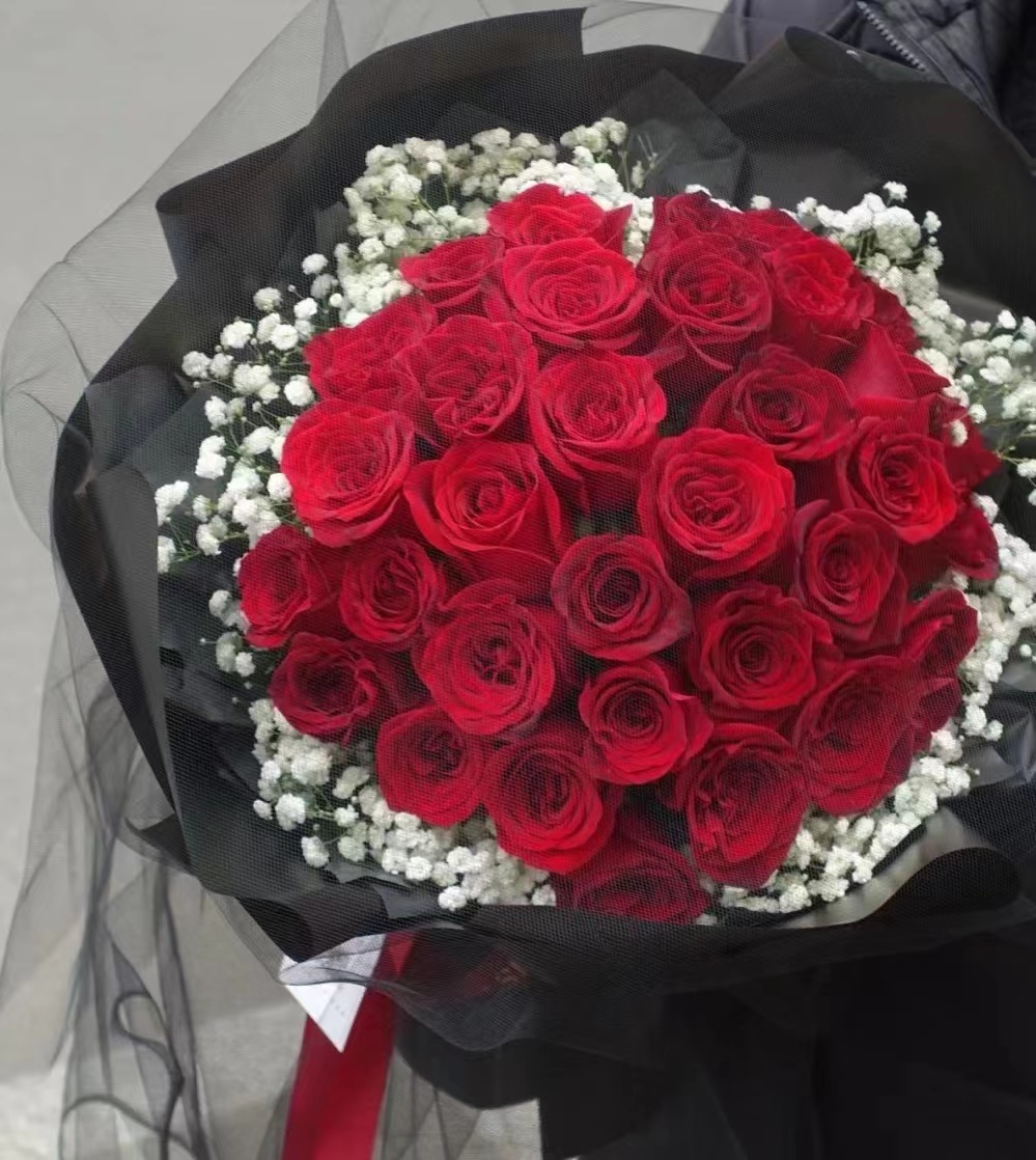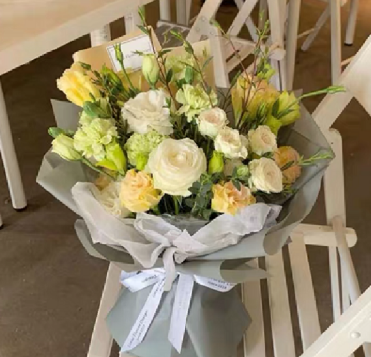 19朵白郁金香 卡布白玫混搭手捧花,如图