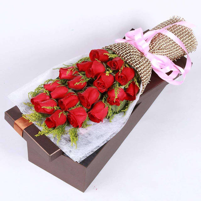 一往情深:精品礼盒19支红玫瑰搭配花
