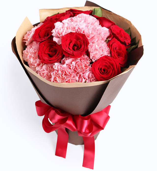 温馨思念.红色康乃馨19支,粉色戴安娜玫瑰11支搭配